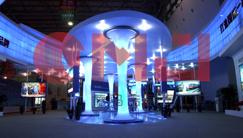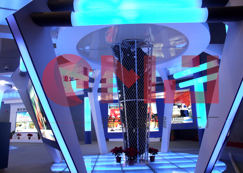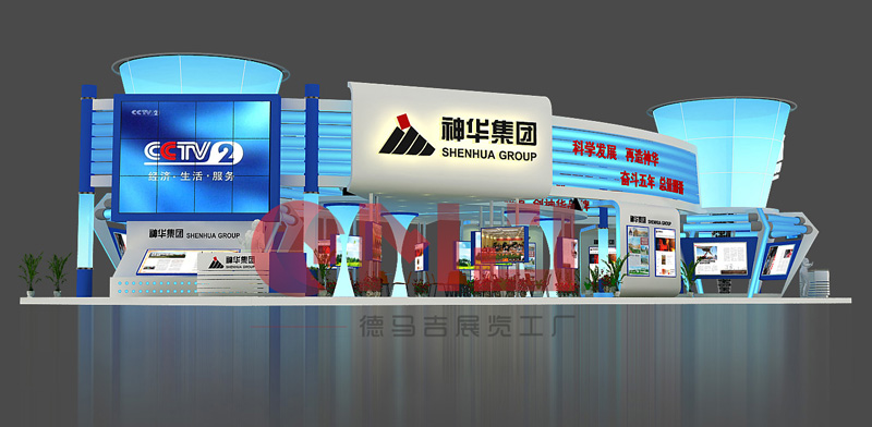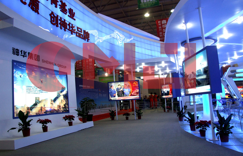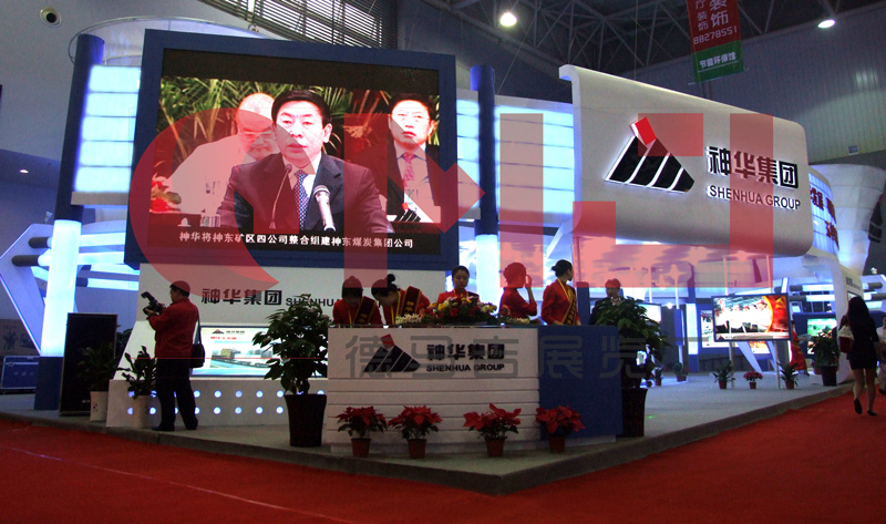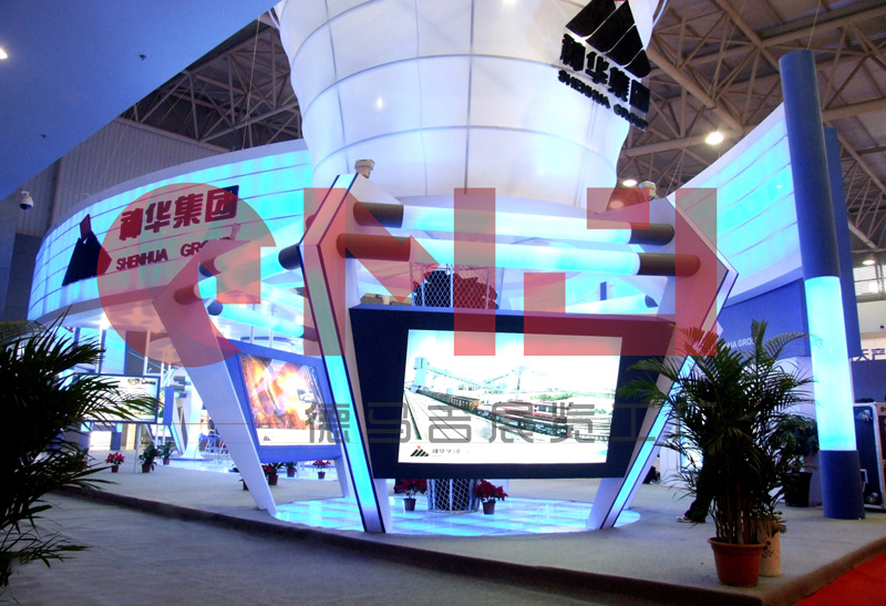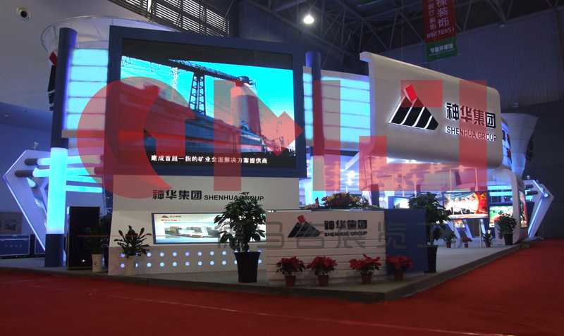 本案设计在满足空间功能需求的前提下,运用现代、明快的设计语言,体现了建筑空间的层次感和和视觉的感染力。整体空间运用大面积的软膜饰面,结合灯带流线型的光感表现手法是展台视觉体现的一大亮点。展台中,“煤”的真实还原,贯穿整个展台起到了点睛之笔的重要。是企业的灵魂及价值体现。在整个立体空间,金属丝网的巧妙设计,“硕果累累”的煤石如同一个核心支柱,铿锵有力,“直上云霄”。